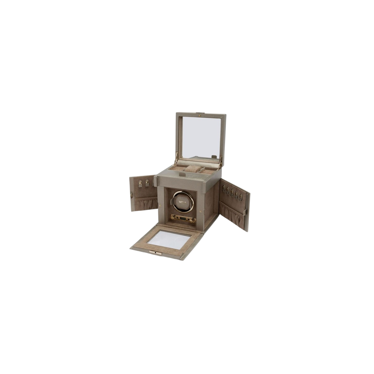 Cette boite à bijoux hybride vous permet de ranger tous vos bijoux ainsi que de remonter une montre automatique.